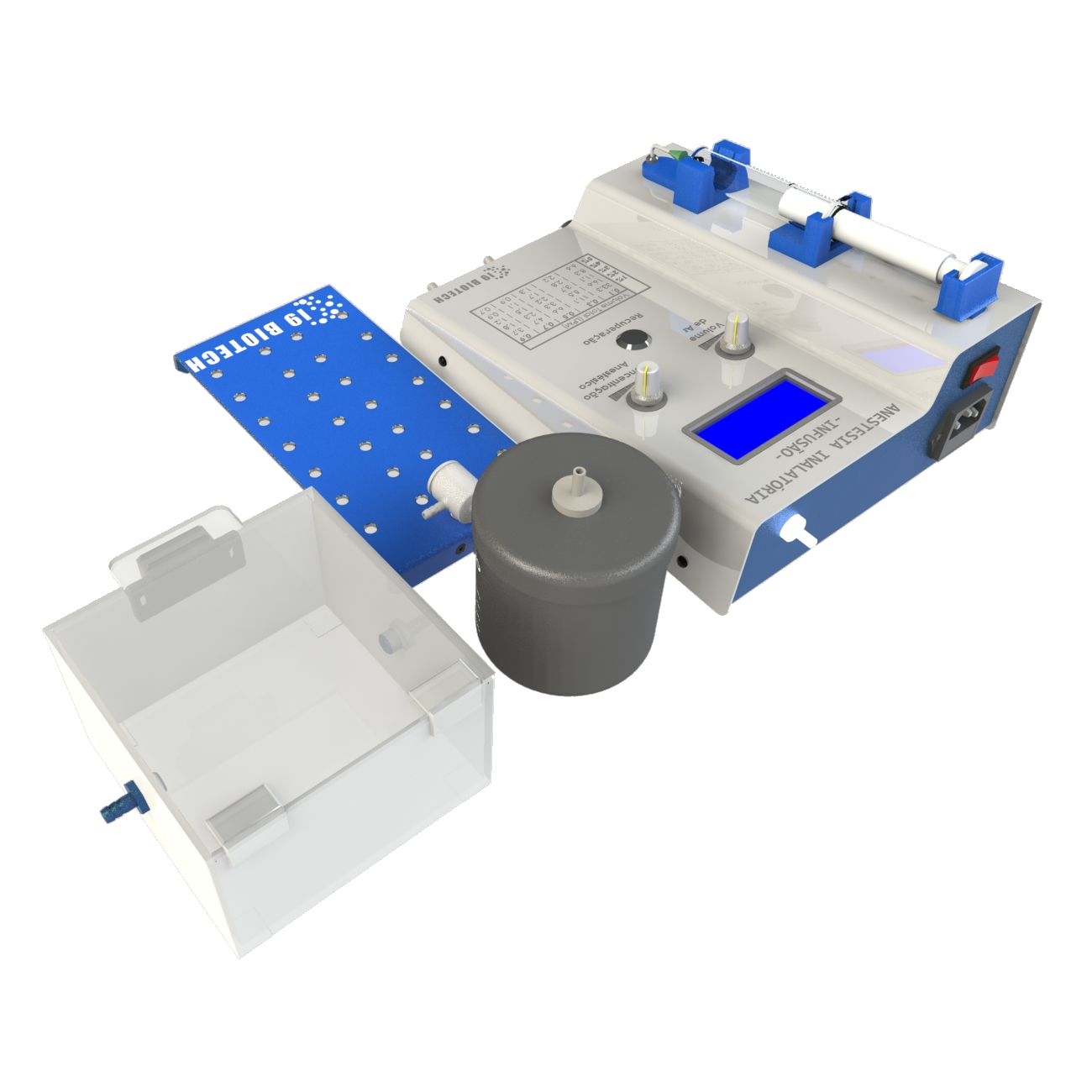 O equipamento Anestesia inalatória da I9 Biotech, conta com a tecnologia de infusão de analgésico de baixo fluxo, no qual objetiva um baixo consumo de anestésico, menor poluição do ambiente, dispensando o uso de capela de exaustão (dado seu sistema de filtragem por carvão ativado), funcionamento opcional com a presença de cilindro de oxigênio.