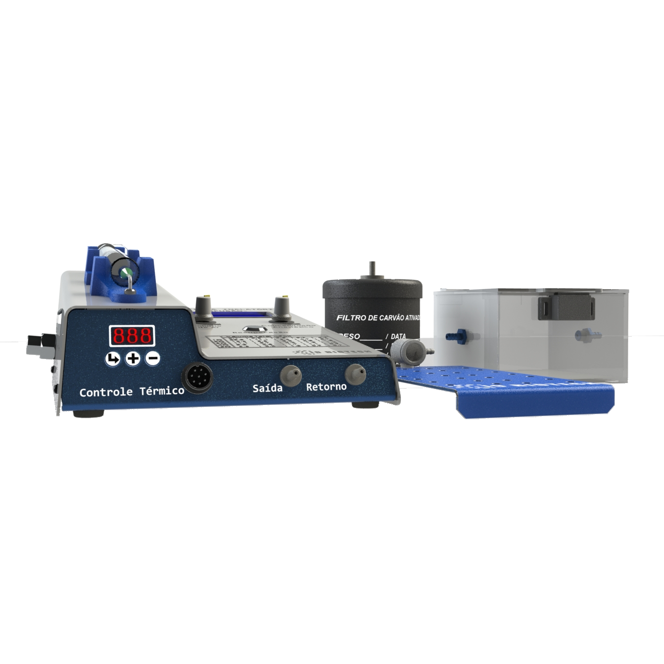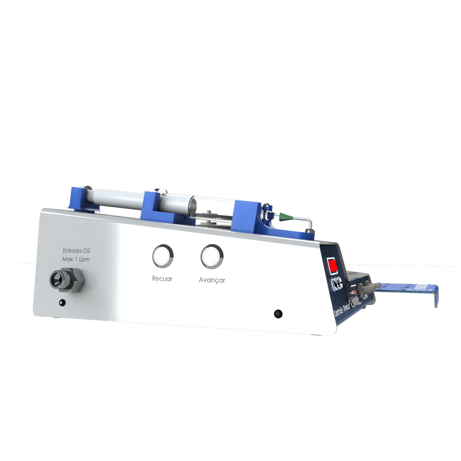 - Ajuste de volume e taxa de infusão na faixa de 0,1 até 0,9(LPM) para ar ambiente e de até 1,5 LPM com cilindro de O2.