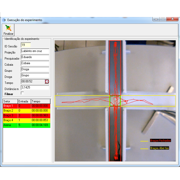 O sistema coleta o trajeto da cobaia dentro dos labirintos, tempo e quantidade de entradas nos compartimentos dos labirintos além da filmagem do processamento em tempo real.